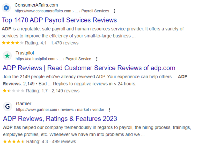 ADP has mixed user reviews, with some users praising the extensive feature set and helpful customer support, while others have criticized the complex interface and occasional billing errors. Some users have also reported difficulty cancelling services. The reviews are a bit more scattered. From Trust pilot’s 2,149 reviews rating of 1.7 to 4.1(1470 reviews) with ConsumerAffiairs and 4.3/5(499 reviews) with Gartner.
